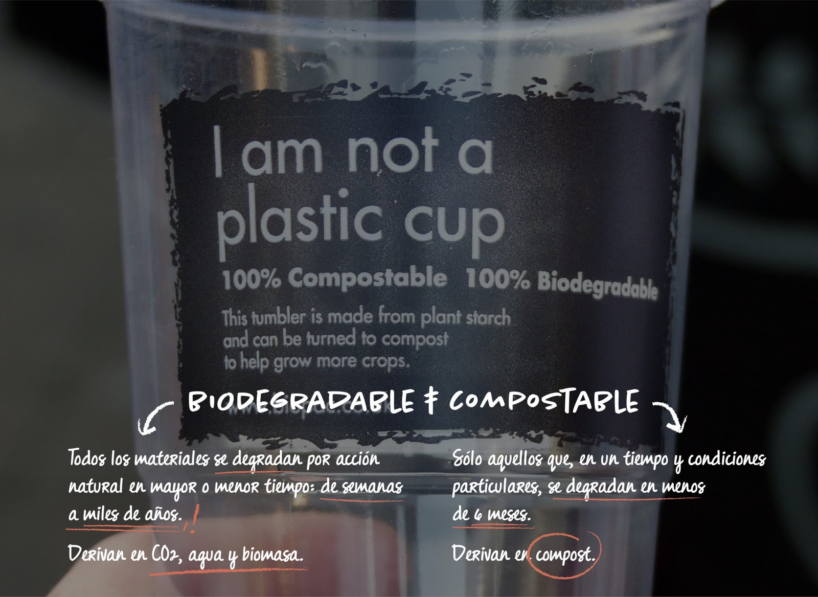 El compostaje es un tipo de biodegradaciónque se realiza en condiciones de presencia de oxígeno y temperatura elevada. Así, bajo unas condiciones específicas y controlables, el envase o producto se degrada por la acción de organismos y microorganismos en otro producto llamado «compost», que puede ser utilizado como abono orgánico para la agricultura y la jardinería.